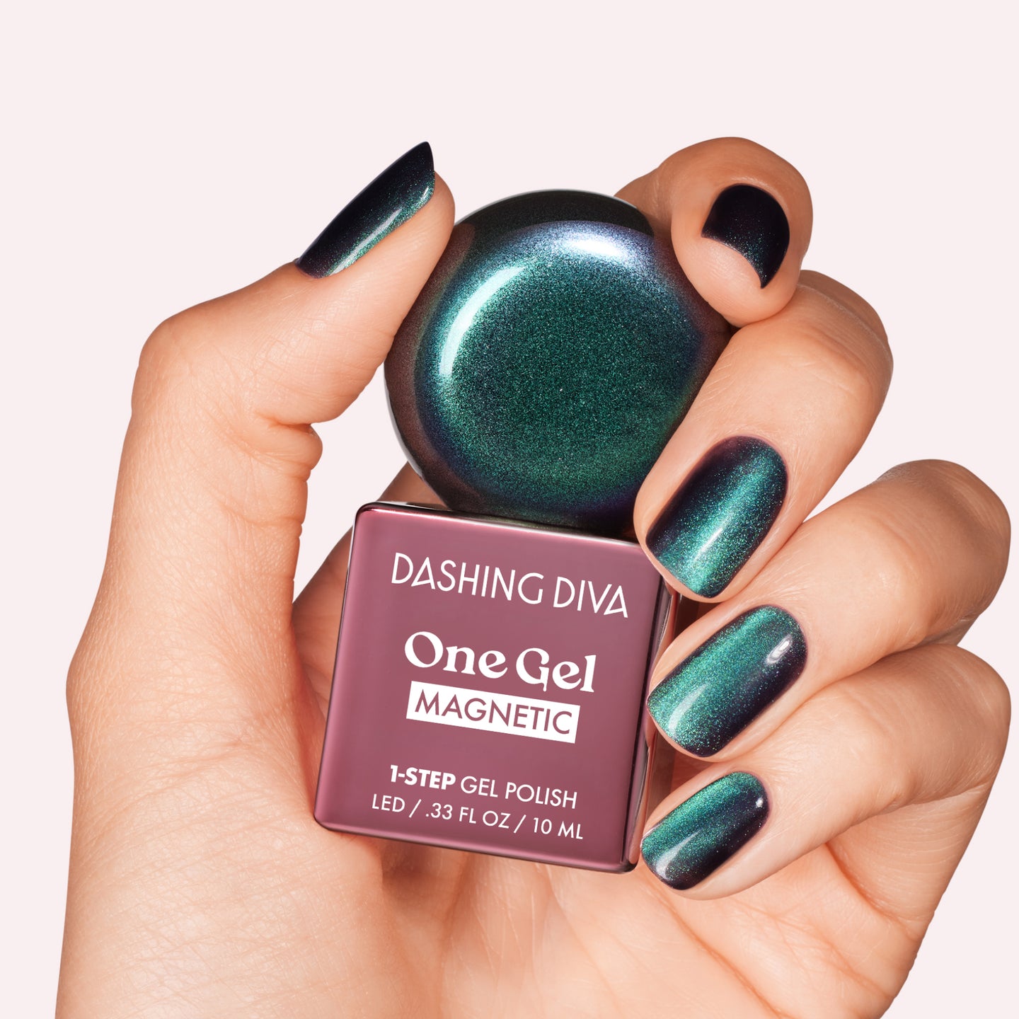 The effects go crazy… A rich 1-step shimmery iridescent teal/indigo gel nail polish that delivers a flawless all-in-one base, color/effects, and topcoat for a salon gel shine that lasts up to 14 days. Easily removes with our One Gel Magic Off Remover Kit, sold separately.