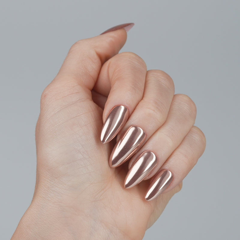 A premium-quality chrome powder made with fine pigments that instantly transforms any color you apply it to. Must be sealed with One Gel Top Coat or any traditional gel topcoat.