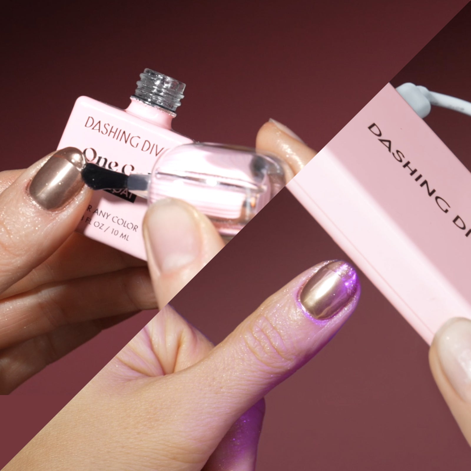 Press button on the back of the One Gel lamp to activate LED light and cure for 60 seconds.