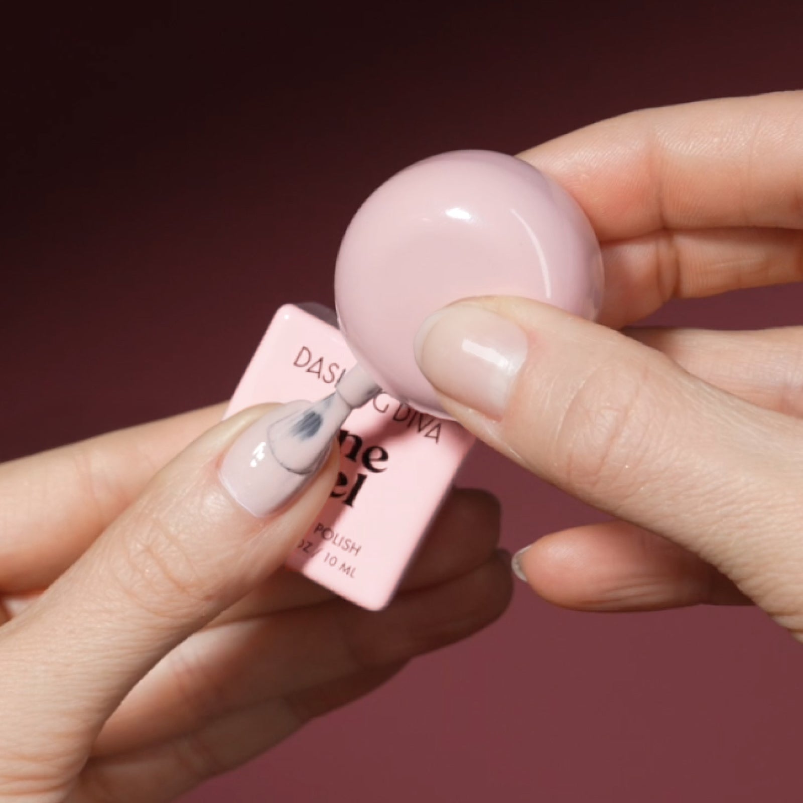 Apply a thin layer of One Gel Kitten gel polish to clean, prepped nails.