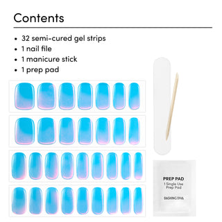 32 semi-cured gel nail strips, 1 prep pad, 1 nail file, 1 manicure stick
