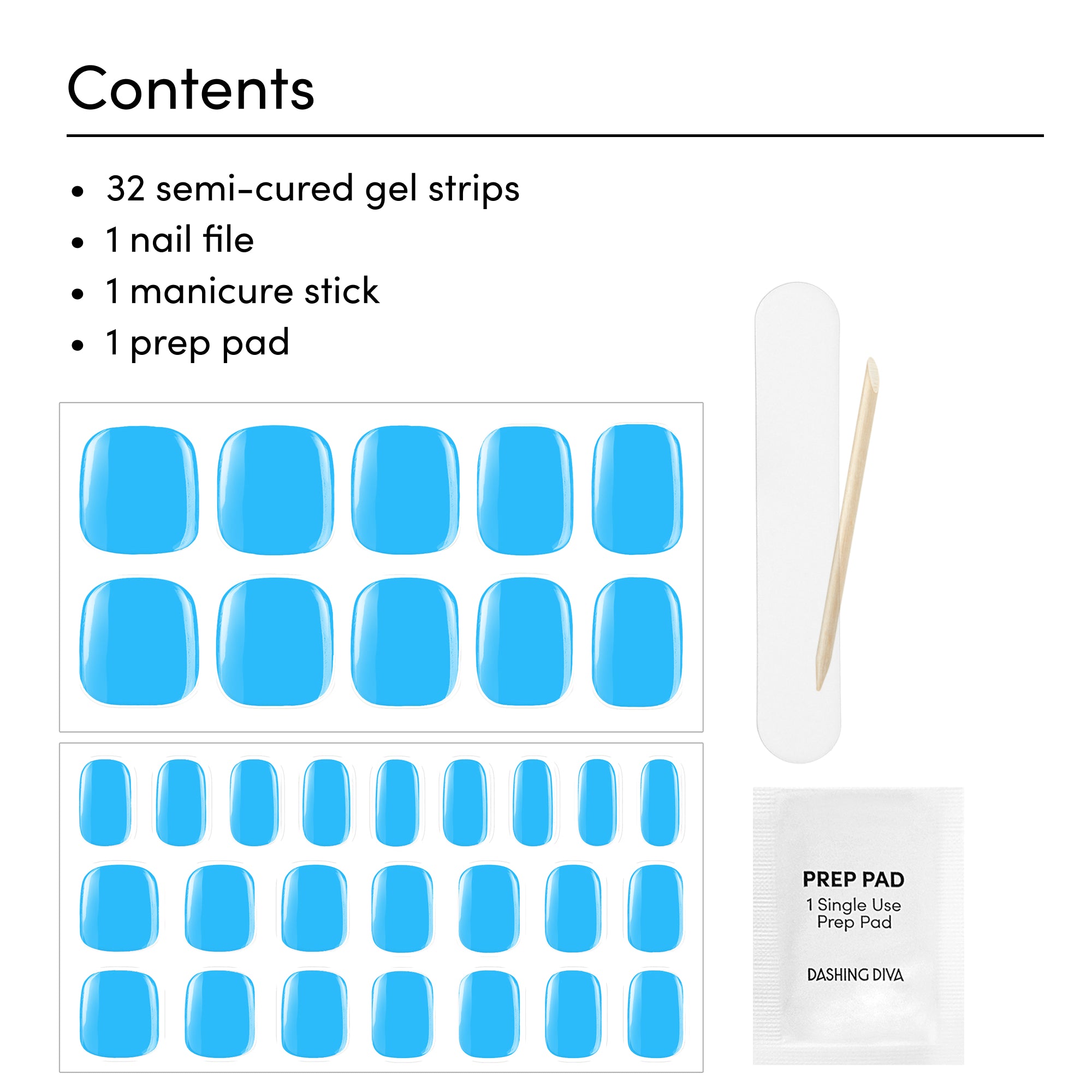 Semi-cured blue gel pedicure strips with mega volume and maximum shine.