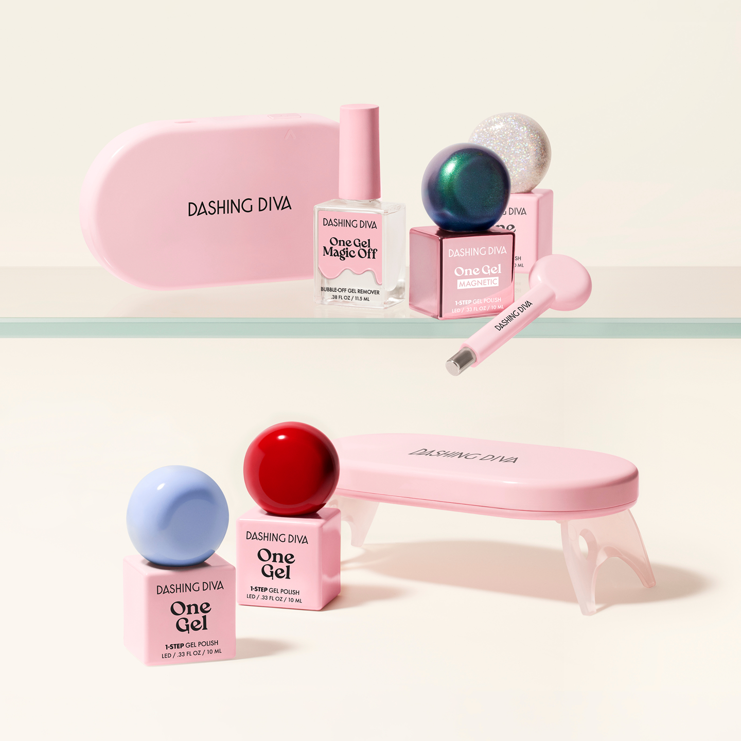 OPTIONAL STEP: Apply & cure Dashing Diva One Gel Top Coat for extended wear & shine. PRO TIP: Ensuring thin layers is crucial for a smooth, even, long-lasting cure. PRO TIP: Curing results may vary if an LED lamp from another brand is used. PRO TIP: Make sure to cap your free edge with polish to ensure longer-lasting wear and the strongest hold.