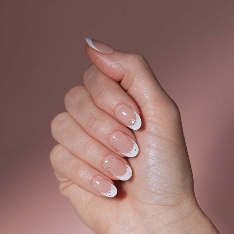 Hold nail strips over desired nail to find the best fit. If between sizes, choose smaller—it shouldn't touch cuticle or any skin.