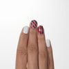 We'd pay the extra upcharge for you any time. Semi-cured glittered red & white gel nail strips featuring stripes & snowflakes with mega volume and maximum shine.