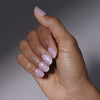 Semi-cured gel nail strips in a lavender-pink shade featuring dimensional shimmer with mega volume and maximum shine.