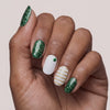 A little bit 'o luck is most definitely included with these glittery emerald, white, and gold gel nail strips, featuring a glossy, high-shine finish.