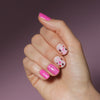 Thinking (or maybe even overthinking!) pink. Medium pink, glittery pink, and heart design gel nail strips with a glossy, high-shine finish.