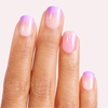 Airbrushed pink & purple press-on gel nails featuring iridescent confetti glitter.
