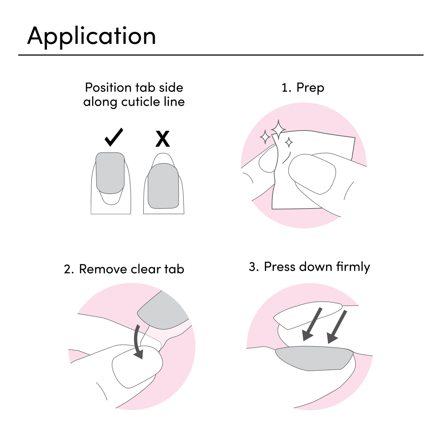 Align nail with cuticle, placing the clear tab side at cuticle edge.