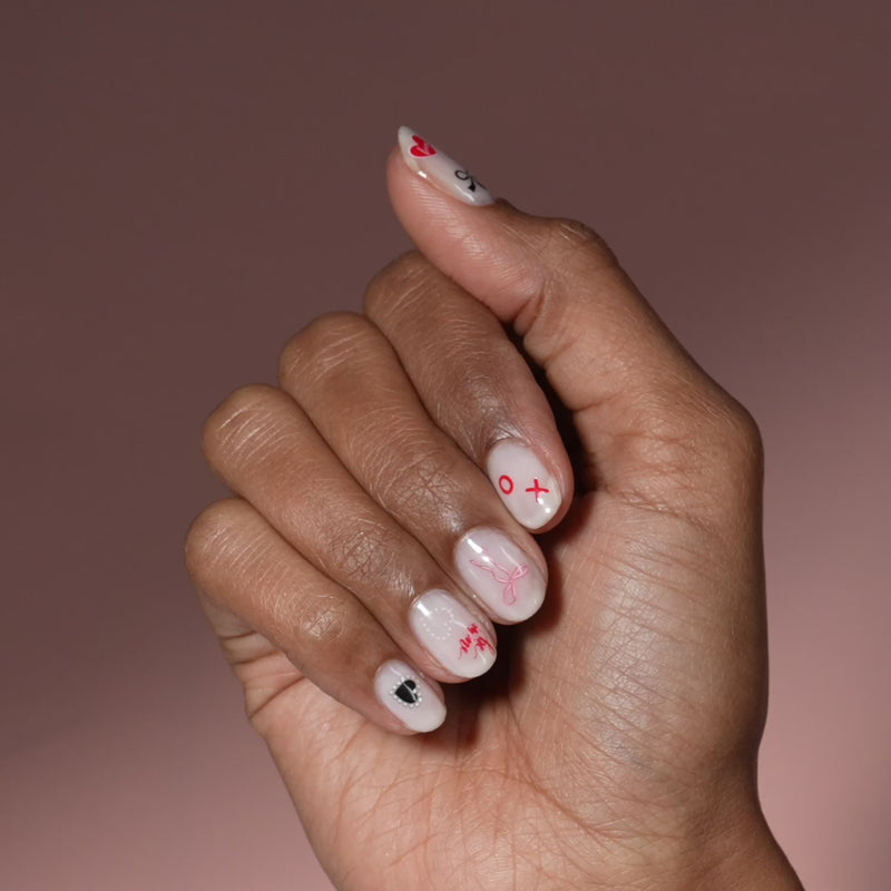 Premium nail art stickers featuring bows, a mix of hearts, admirer scribbles and more!