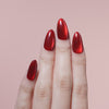 Make em work hard. Medium length, almond shape, glossy finish. Red glue-on gel nails featuring a magnetic/cateye effect.