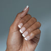 Le French, perfected. These classic glue-on gel nails have an apricot nude base and come in short length with a squoval shape. C'est chic!