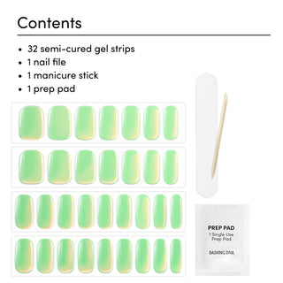 32 semi-cured gel nail strips, 1 prep pad, 1 nail file, 1 manicure stick