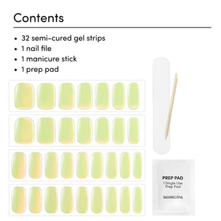 32 semi-cured gel nail strips, 1 prep pad, 1 nail file, 1 manicure stick
